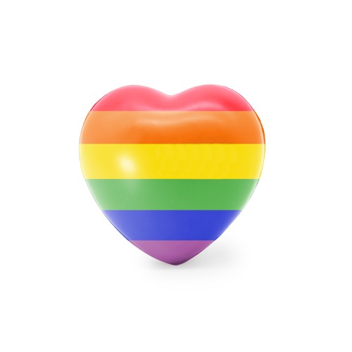Antiestrés en forma de corazón con diseño Rainbow, fabricado en un suave cuerpo con acolchado de PU brillante.