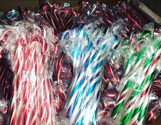 Bastón de dulce. Amarrados en paquetes de 10 unidades.