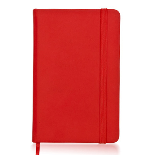Bloc de notas con tapas de suave tacto, acabado en polipiel y en desenfadados colores. De 100 hojas lisas, con elástico de sujeción y marcapáginas de tela a juego. Portada Rígida. 100 Hojas