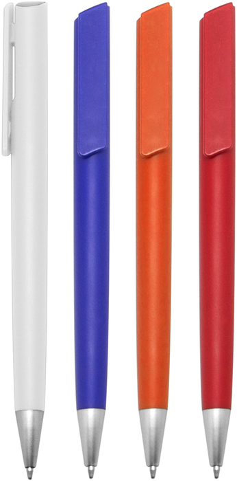 Plástico. Cuerpo color. Clip pulsador y puntera color plata. Tinta negra