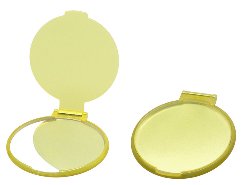 Espejo redondo de bolsillo, de plástico ABS, con tapa. Presentación individual en bolsita de polipropileno.