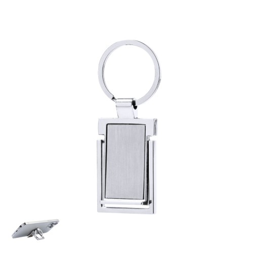 Llavero soporte para smartphone fabricado en metal.