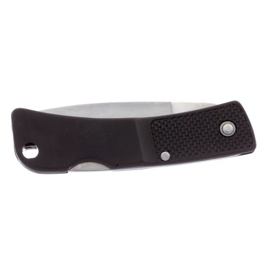 Navaja con hoja de acero inox y resistente empuñadura anti deslizante con bloqueo de seguridad. Con troquelado en mango y presentada en caja individual. Con Bloqueo
