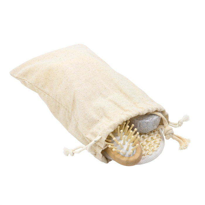 Set de baño / Spa. Incluye: 5 accesorios de belleza y limpieza. Espejo de bambú (Ø 7,2 x 0,8 cm.); Cepillo de madera (12,5 x 3,7 x 3,5 cm.); Piedra pómez con cordón de algodón (9,5 x 4,5 x 2cm.); Esponja bola de red con cordón de poliéster (Ø 9 cm.); Esponja de mano con elástico, recubierta en algodón y tejido exfoliante (14,7 x 9,7cm.).