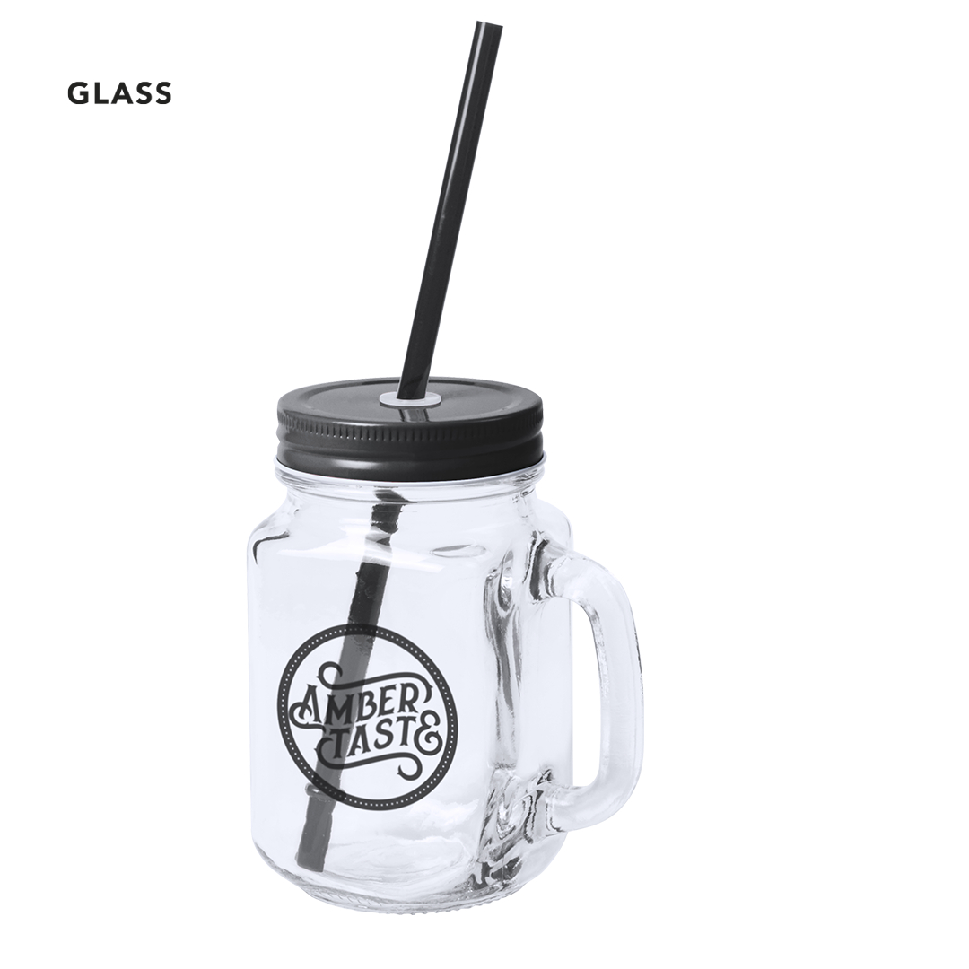 Tarro multiusos de cristal de 500ml de capacidad con tapa y pajita en vivos colores. Con tapa metálica a rosca y presentado en atractiva caja de diseño. 500 ml